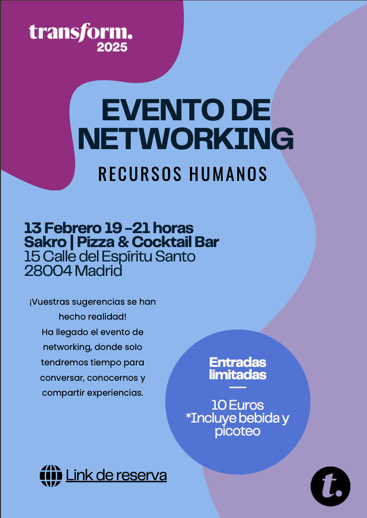 ¡Las plazas son limitadas! Reserva la tuya aquí aportando 10 euros (incluye una consumición y picoteo) y sé parte de la comunidad de RRHH y emprendimiento más innovadora y global 🚀.